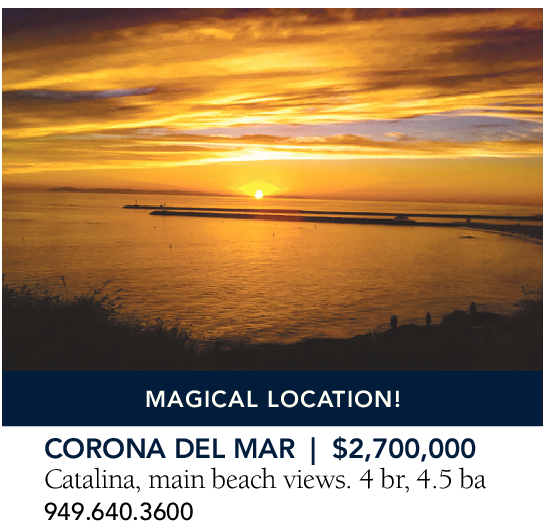CORONA DEL MAR | $2,700,000 Catalina, main beach views. 4 br, 4.5 ba 949.640.3600