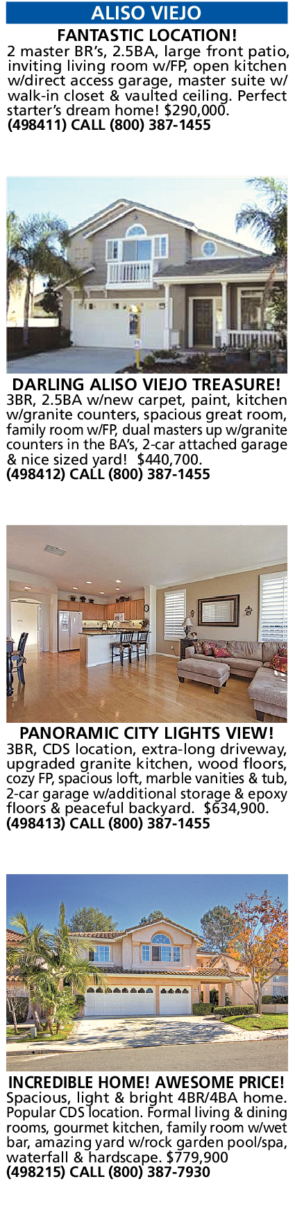 2 master BR’s, 2.5BA, large front patio, inviting living room w/FP, open kitchen w/direct access garage, master suite w/ walk-in closet & vaulted ceiling. Perfect starter’s dream home! $290,000. (498411) CALL (800) 387-1455
