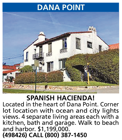 Located in the heart of Dana Point. Corner lot location with ocean and city lights views. 4 separate living areas each with a kitchen, bath and garage. Walk to beach and harbor. $1,199,000. (498426) CALL (800) 387-1450