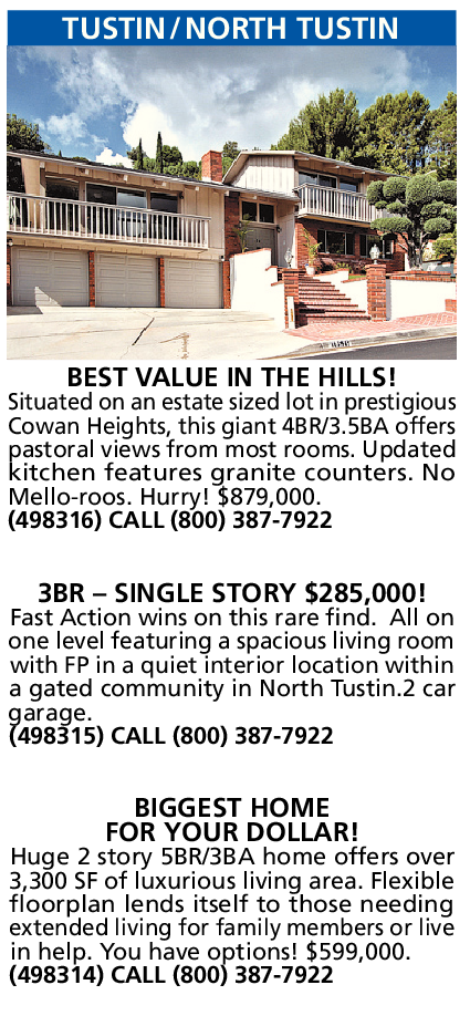 Situated on an estate sized lot in prestigious Cowan Heights, this giant 4BR/3.5BA offers pastoral views from most rooms. Updated kitchen features granite counters. No Mello-roos. Hurry! $879,000. (498316) CALL (800) 387-7922