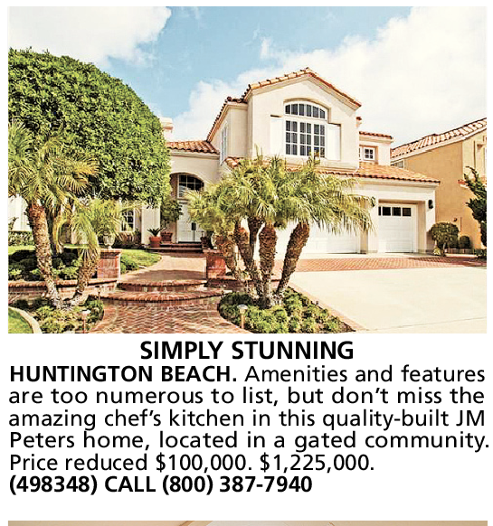 SIMPLY STUNNING HUNTINGTON BEACH. Amenities and features are too numerous to list, but don’t miss the amazing chef’s kitchen in this quality-built JM Peters home, located in a gated community. Price reduced $100,000. $1,225,000. (498348) CALL (800) 387-7940