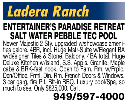Deluxe Kitchen w/island, S.S. Appls. Granite, Maple 3 car garg, fire Pit. Blt-in BBQ. Luxury pool/Spa, so Den/Office. Frml. Din. Rm. French Doors & Windows. 949/597-4000 much to see. Only $825,000. Call.