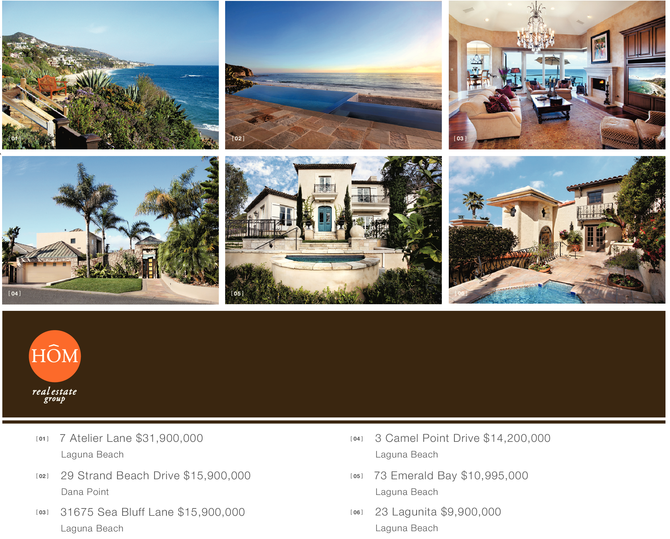 18 [ 01 ] [ 02 ] [ 03 ] [ 04 ] [ 05 ] [ 06 ] [ 01 ] [ 02 ] [ 03 ] 7 Atelier Lane $31,900,000 Laguna Beach 29 Strand Beach Drive $15,900,000 Dana Point 31675 Sea Bluff Lane $15,900,000 Laguna Beach [ 04 ] [ 05 ] [ 06 ] 3 Camel Point Drive $14,200,000 Laguna Beach 73 Emerald Bay $10,995,000 Laguna Beach 23 Lagunita $9,900,000 Laguna Beach