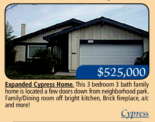 Expanded Cypress Home. This 3 bedroom 3 bath family home is located a few doors down from neighborhood park. Family/Dining room off bright kitchen, Brick fireplace, a/c and more!