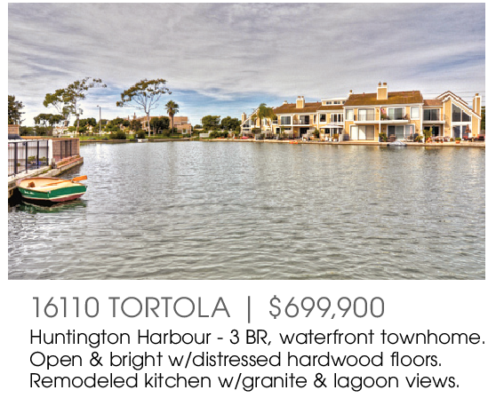 16110 TORTOLA | $699,900 Huntington Harbour - 3 BR, waterfront townhome. Open & bright w/distressed hardwood floors. Remodeled kitchen w/granite & lagoon views.