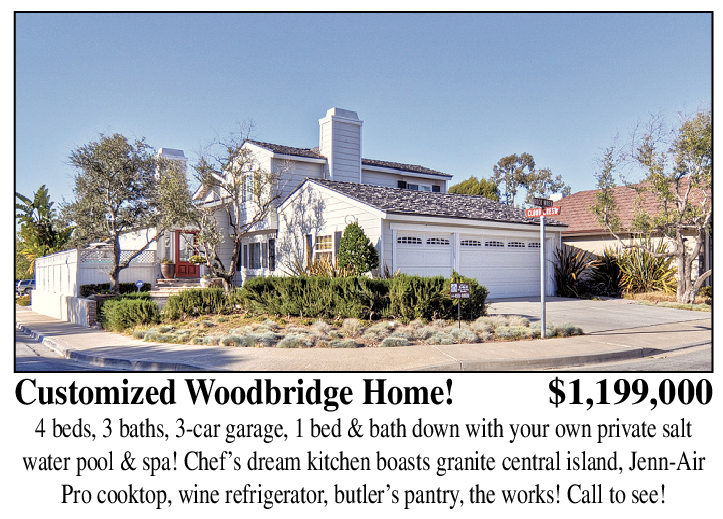 Customized Woodbridge Home! $1,199,000 4 beds, 3 baths, 3-car garage, 1 bed & bath down with your own private salt water pool & spa! Chef’s dream kitchen boasts granite central island, Jenn-Air Pro cooktop, wine refrigerator, butler’s pantry, the works! Call to see!