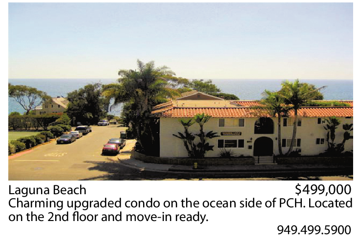 Laguna Beach $499,000 Charming upgraded condo on the ocean side of PCH. Located on the 2nd floor and move-in ready.