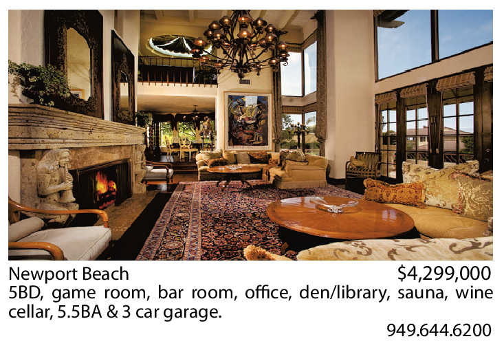 Newport Beach $4,299,000 5BD, game room, bar room, office, den/library, sauna, wine cellar, 5.5BA & 3 car garage.
