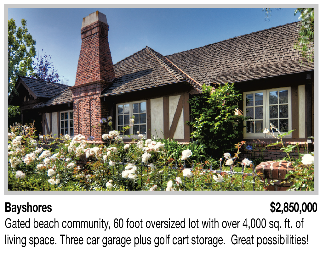 Bayshores $2,850,000 Gated beach community, 60 foot oversized lot with over 4,000 sq. ft. of living space. Three car garage plus golf cart storage. Great possibilities!