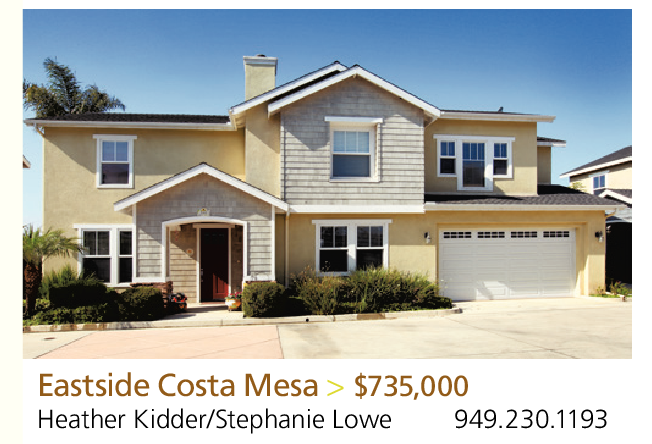 Eastside Costa Mesa > $735,000 Heather Kidder/Stephanie Lowe 949.230.1193