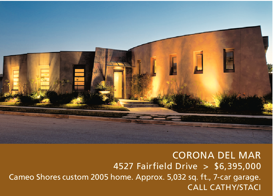 CORONA DEL MAR 4527 Fairfield Drive > $6,395,000 Cameo Shores custom 2005 home. Approx. 5,032 sq. ft., 7-car garage.