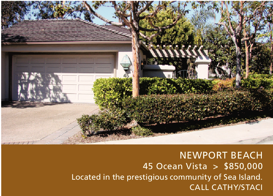 NEWPORT BEACH 45 Ocean Vista > $850,000 Located in the prestigious community of Sea Island.