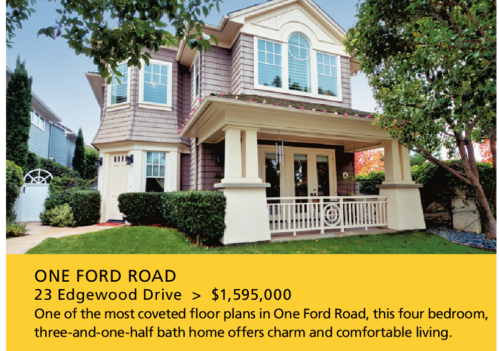 ONE FORD ROAD 23 Edgewood Drive > $1,595,000 OneofthemostcovetedfloorplansinOneFordRoad,thisfourbedroom, three-and-one-halfbathhomeofferscharmandcomfortableliving.