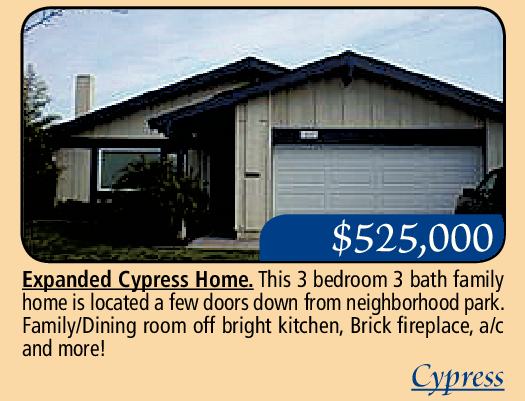 Expanded Cypress Home. This 3 bedroom 3 bath family home is located a few doors down from neighborhood park. Family/Dining room off bright kitchen, Brick fireplace, a/c and more!