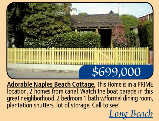 $699,000 Adorable Naples Beach Cottage. This Home is in a PRIME location, 2 homes from canal. Watch the boat parade in this great neighborhood. 2 bedroom 1 bath w/formal dining room, plantation shutters, lot of storage. Call to see! Long Beach See also
