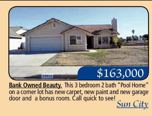 Bank Owned Beauty. This 3 bedroom 2 bath “Pool Home” on a corner lot has new carpet, new paint and new garage door and a bonus room. Call quick to see!