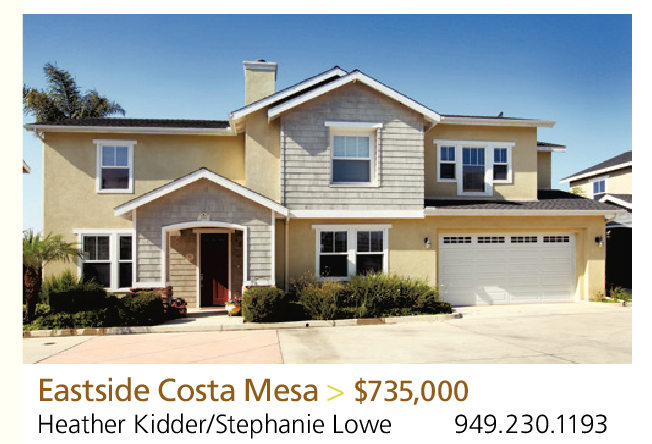 Eastside Costa Mesa > $735,000 Heather Kidder/Stephanie Lowe 949.230.1193