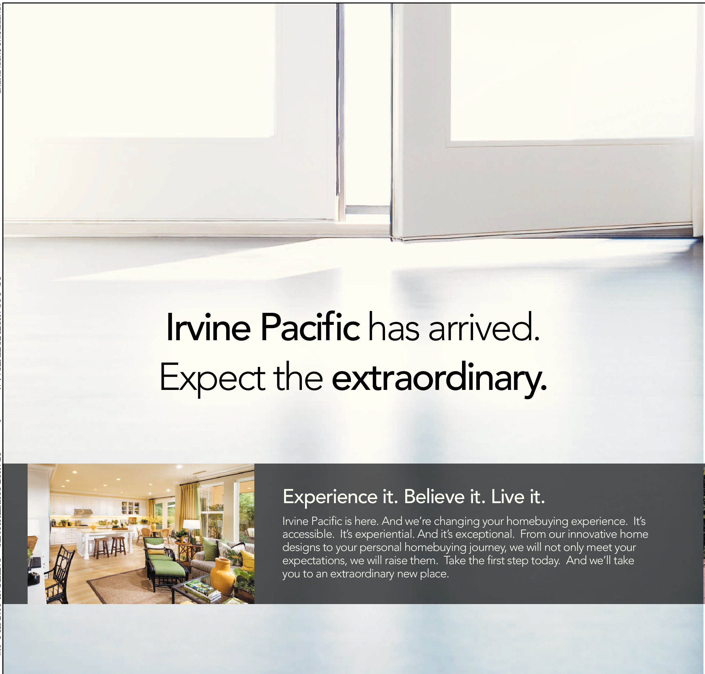 Irvine Pacific is here. And we’re changing your homebuying experience. It’s accessible. It’s experiential. And it’s exceptional. From our innovative home designs to your personal homebuying journey, we will not only meet your expectations, we will raise them. Take the first step today. And we’ll take you to an extraordinary new place.
