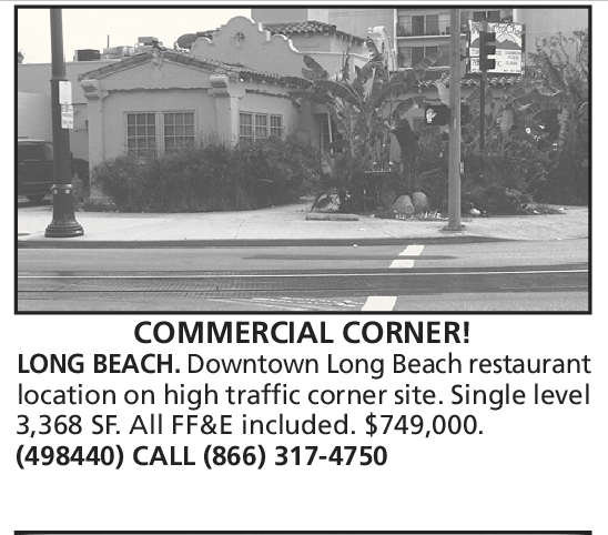 LONG BEACH. Downtown Long Beach restaurant location on high traffic corner site. Single level 3,368 SF. All FF&E included. $749,000.