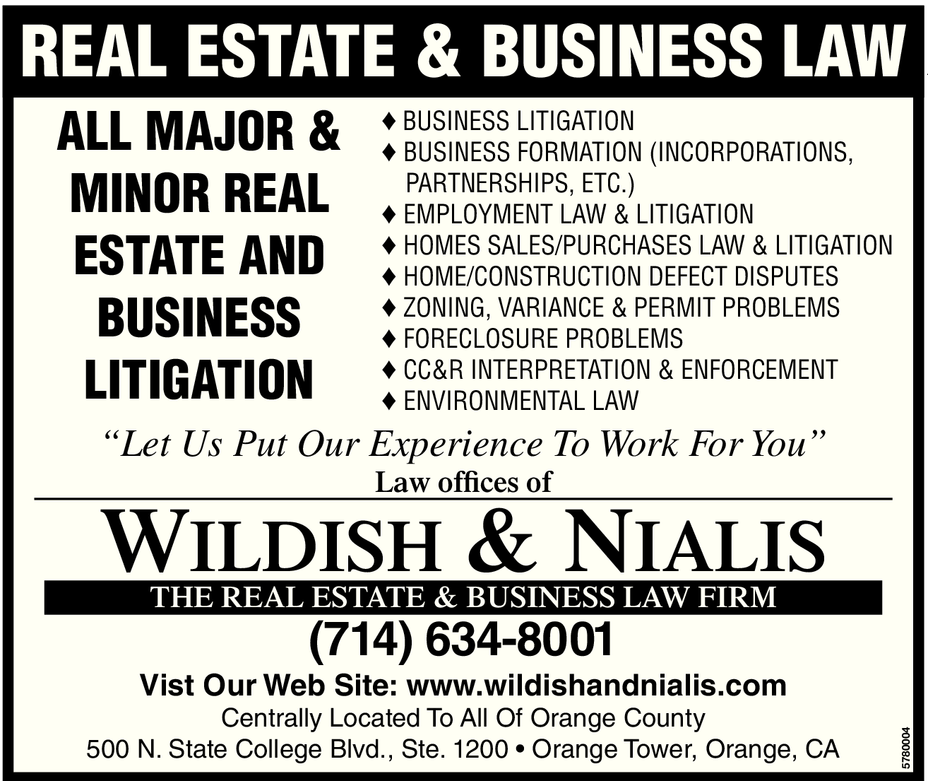 EMPLOYMENT LAW & LITIGATION HOMES SALES/PURCHASES LAW & LITIGATION HOME/CONSTRUCTION DEFECT DISPUTES ZONING, VARIANCE & PERMIT PROBLEMS FORECLOSURE PROBLEMS CC&R INTERPRETATION & ENFORCEMENT ENVIRONMENTAL LAW