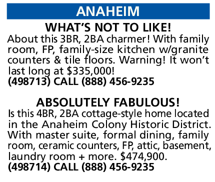Is this 4BR, 2BA cottage-style home located in the Anaheim Colony Historic District. With master suite, formal dining, family room, ceramic counters, FP, attic, basement, laundry room + more. $474,900. (498714) CALL (888) 456-9235