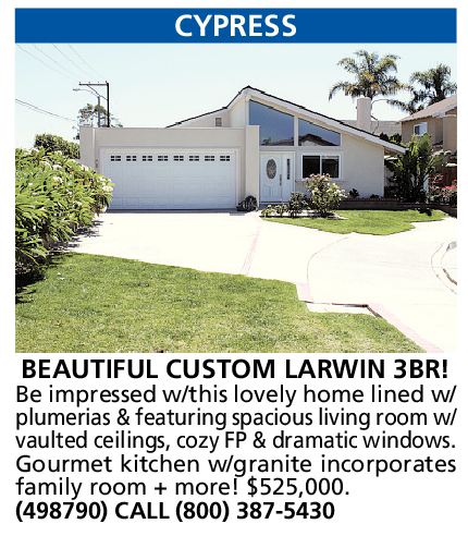 Be impressed w/this lovely home lined w/ plumerias & featuring spacious living room w/ vaulted ceilings, cozy FP & dramatic windows. Gourmet kitchen w/granite incorporates family room + more! $525,000. (498790) CALL (800) 387-5430