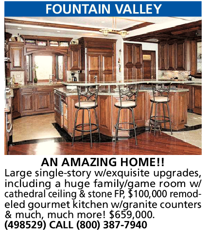 Large single-story w/exquisite upgrades, including a huge family/game room w/ cathedral ceiling & stone FP, $100,000 remodeled gourmet kitchen w/granite counters & much, much more! $659,000. (498529) CALL (800) 387-7940