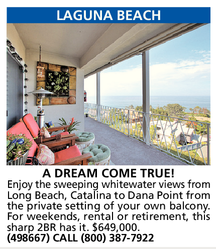 Enjoy the sweeping whitewater views from Long Beach, Catalina to Dana Point from the private setting of your own balcony. For weekends, rental or retirement, this sharp 2BR has it. $649,000. (498667) CALL (800) 387-7922