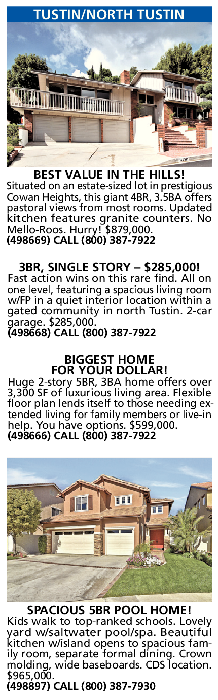 Situated on an estate-sized lot in prestigious Cowan Heights, this giant 4BR, 3.5BA offers pastoral views from most rooms. Updated kitchen features granite counters. No Mello-Roos. Hurry! $879,000. (498669) CALL (800) 387-7922