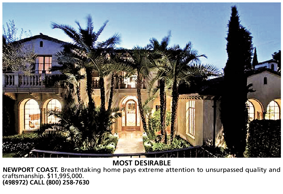 MOST DESIRABLE NEWPORT COAST. Breathtaking home pays extreme attention to unsurpassed quality and craftsmanship. $11,995,000. (498972) CALL (800) 258-7630