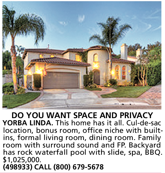 DO YOU WANT SPACE AND PRIVACY YORBA LINDA. This home has it all. Cul-de-sac location, bonus room, office niche with builtins, formal living room, dining room. Family room with surround sound and FP. Backyard has rock waterfall pool with slide, spa, BBQ.
