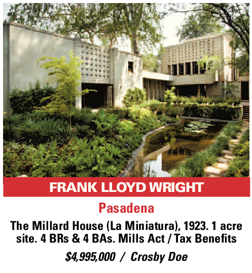 Pasadena The Millard House (La Miniatura), 1923. 1 acre site. 4 BRs & 4 BAs. Mills Act / Tax Benefits $4,995,000 / Crosby Doe