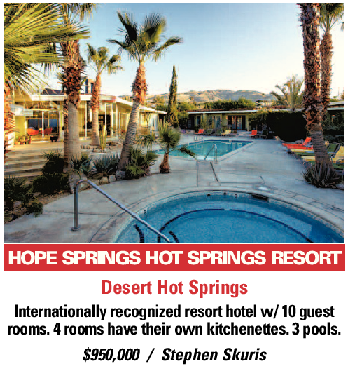 HOPE SPRINGS HOT SPRINGS RESORT Desert Hot Springs Internationally recognized resort hotel w/ 10 guest rooms. 4 rooms have their own kitchenettes. 3 pools.