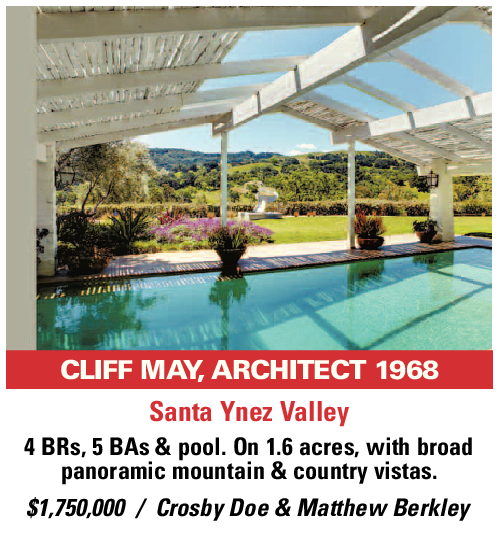 CLIFF MAY, ARCHITECT 1968 Santa Ynez Valley 4 BRs, 5 BAs & pool. On 1.6 acres, with broad panoramic mountain & country vistas.