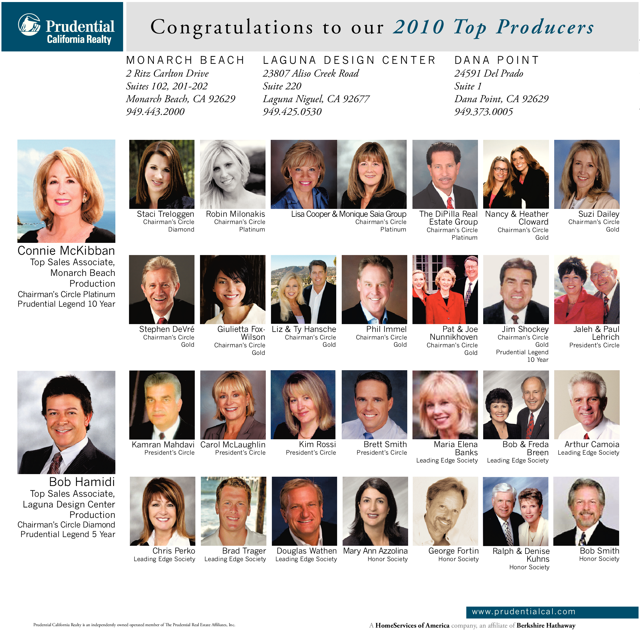 Top Sales Associate, Monarch Beach Production Chairman’s Circle Platinum Prudential Legend 10 Year