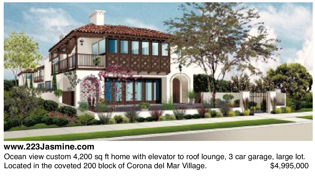 www.223Jasmine.com Ocean view custom 4,200 sq ft home with elevator to roof lounge, 3 car garage, large lot. Located in the coveted 200 block of Corona del Mar Village. $4,995,000