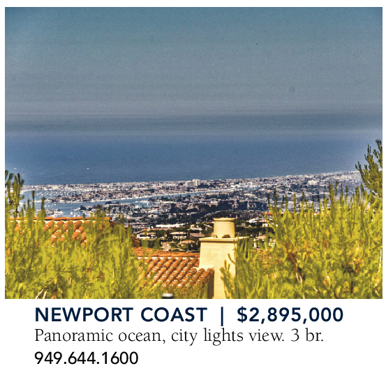 NEWPORT COAST | $2,895,000 Panoramic ocean, city lights view. 3 br. 949.644.1600