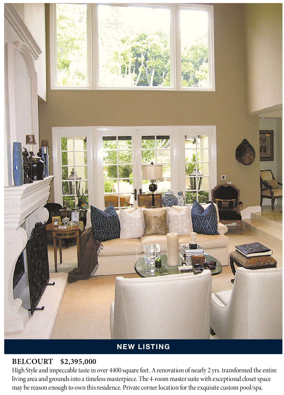 NEW LISTING BELCOURT $2,395,000 High Style and impeccable taste in over 4400 square feet. A renovation of nearly 2 yrs. transformed the entire living area and grounds into a timeless masterpiece. The 4-room master suite with exceptional closet space may be reason enough to own this residence. Private corner location for the exquisite custom pool/spa. See also