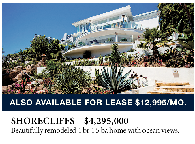 SHORECLIFFS $4,295,000 Beautifully remodeled 4 br 4.5 ba home with ocean views.