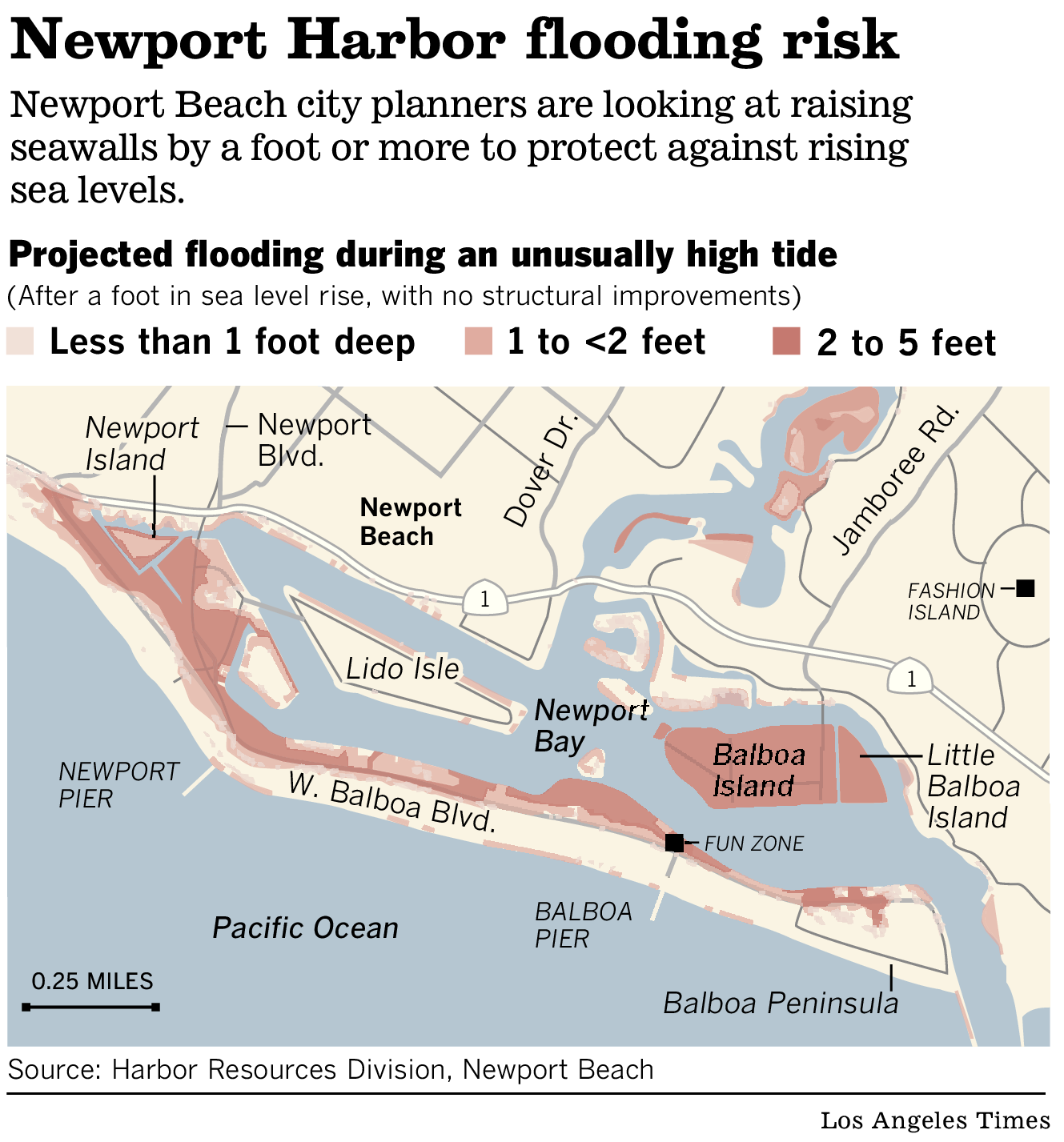 Funding for public works projects is scarce, and relocating structures out of harm’s way is an unlikely option in built-out Newport Beach, where homes with harbor views are worth several million dollars.