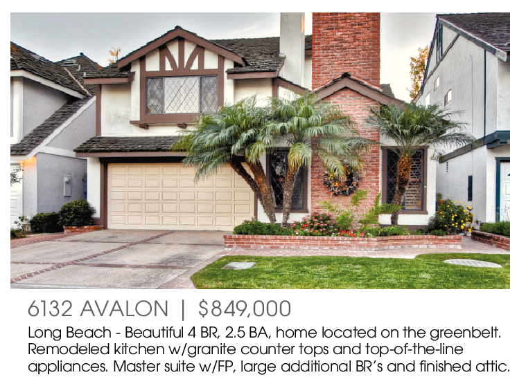 6132 AVALON | $849,000 Long Beach - Beautiful 4 BR, 2.5 BA, home located on the greenbelt. Remodeled kitchen w/granite counter tops and top-of-the-line appliances. Master suite w/FP, large additional BR’s and finished attic.