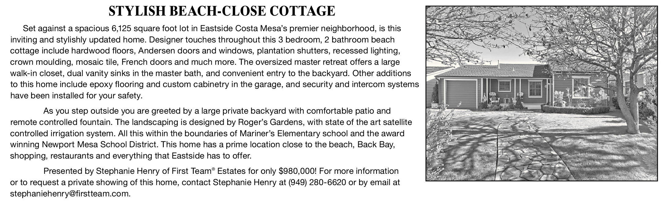 Presented by Stephanie Henry of First Team ® Estates for only $980,000! For more information or to request a private showing of this home, contact Stephanie Henry at (949) 280-6620 or by email at stephaniehenry@firstteam.com.
