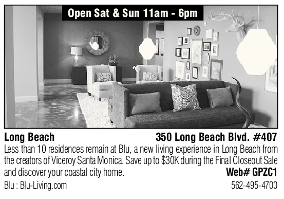 Long Beach 350 Long Beach Blvd. #407 Less than 10 residences remain at Blu, a new living experience in Long Beach from the creators of Viceroy Santa Monica. Save up to $30K during the Final Closeout Sale and discover your coastal city home. Web# GPZC1 Blu : Blu-Living.com 562-495-4700