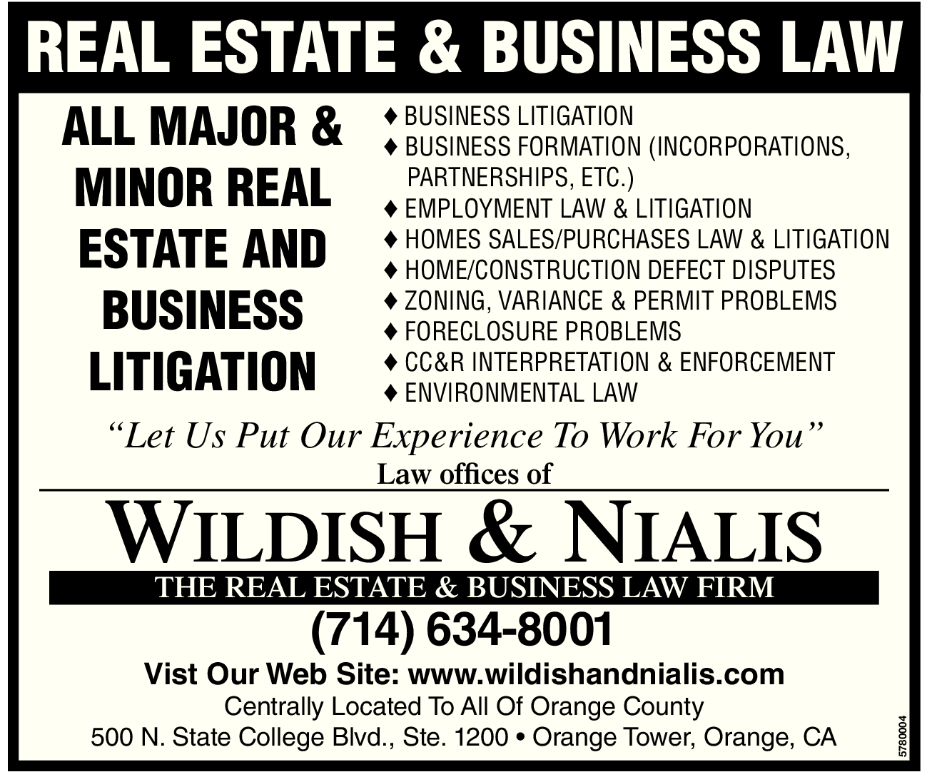 EMPLOYMENT LAW & LITIGATION HOMES SALES/PURCHASES LAW & LITIGATION HOME/CONSTRUCTION DEFECT DISPUTES ZONING, VARIANCE & PERMIT PROBLEMS FORECLOSURE PROBLEMS CC&R INTERPRETATION & ENFORCEMENT ENVIRONMENTAL LAW