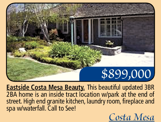 Eastside Costa Mesa Beauty. This beautiful updated 3BR 2BA home is an inside tract location w/park at the end of street. High end granite kitchen, laundry room, fireplace and spa w/waterfall. Call to See!