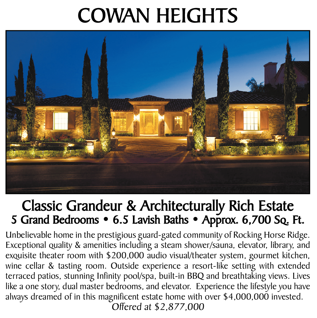 Unbelievable home in the prestigious guard-gated community of Rocking Horse Ridge. Exceptional quality & amenities including a steam shower/sauna, elevator, library, and exquisite theater room with $200,000 audio visual/theater system, gourmet kitchen, wine cellar & tasting room. Outside experience a resort-like setting with extended terraced patios, stunning Infinity pool/spa, built-in BBQ and breathtaking views. Lives like a one story, dual master bedrooms, and elevator. Experience the lifestyle you have always dreamed of in this magnificent estate home with over $4,000,000 invested.