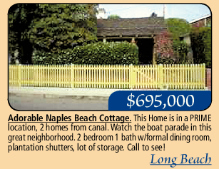 Adorable Naples Beach Cottage. This Home is in a PRIME location, 2 homes from canal. Watch the boat parade in this great neighborhood. 2 bedroom 1 bath w/formal dining room, plantation shutters, lot of storage. Call to see!