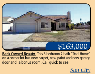 Bank Owned Beauty. This 3 bedroom 2 bath “Pool Home” on a corner lot has new carpet, new paint and new garage door and a bonus room. Call quick to see!