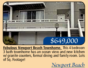 Fabulous Newport Beach Townhome. This 4 bedroom 3 bath townhome has an ocean view and new kitchen w/ granite counters, formal dining and family room. Lots of Sq. Footage!