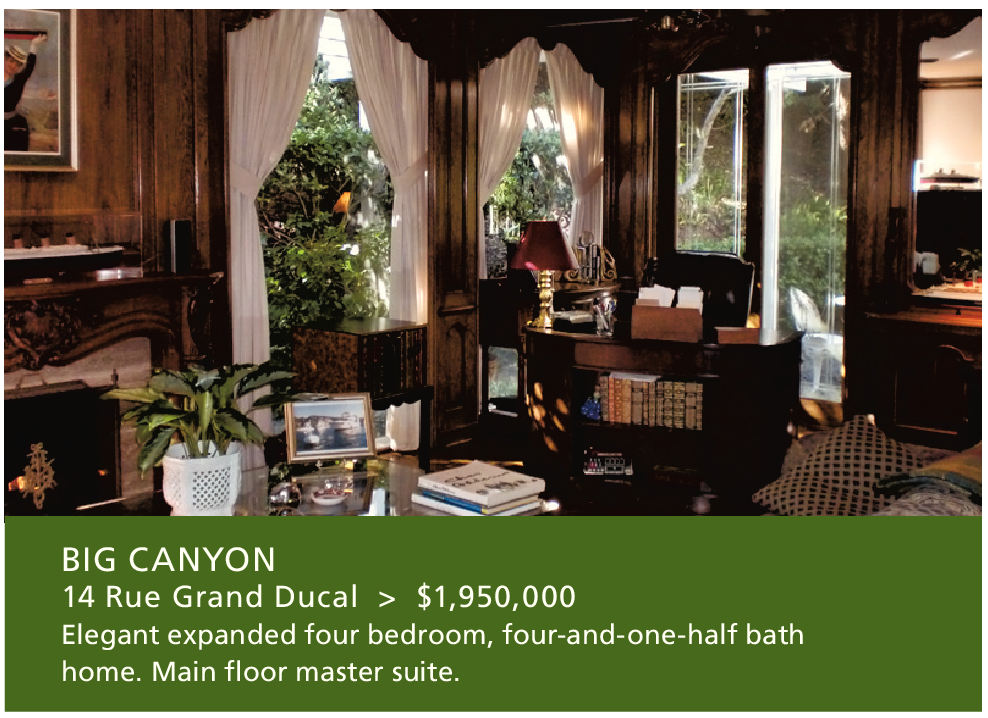 BIG CANYON 14 Rue Grand Ducal > $1,950,000 Elegant expanded four bedroom, four-and-one-half bath home. Main floor master suite.